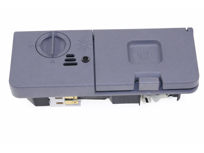 Oryginalny dozownik detergentów (pojemnik na proszek i nabłyszczacz) do zmywarek marek Whirlpool, Indesit oraz Hotpoint Ariston. Element odpowiada za prawidłowe dozowanie detergentu i środka nabłyszczającego w odpowiedniej fazie cyklu mycia, co ma bezpośredni wpływ na skuteczność zmywania i jakość suszenia naczyń.