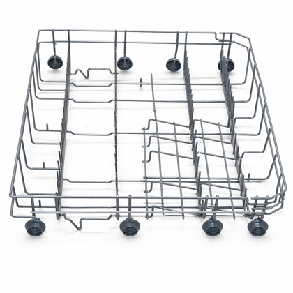 Kosz dolny na naczynia to oryginalna część zamienna przeznaczona do zmywarek marek Candy, Hoover oraz Midea. Element montowany jest w dolnej części komory zmywarki i służy do stabilnego rozmieszczania talerzy, garnków, patelni oraz innych większych naczyń podczas cyklu mycia.