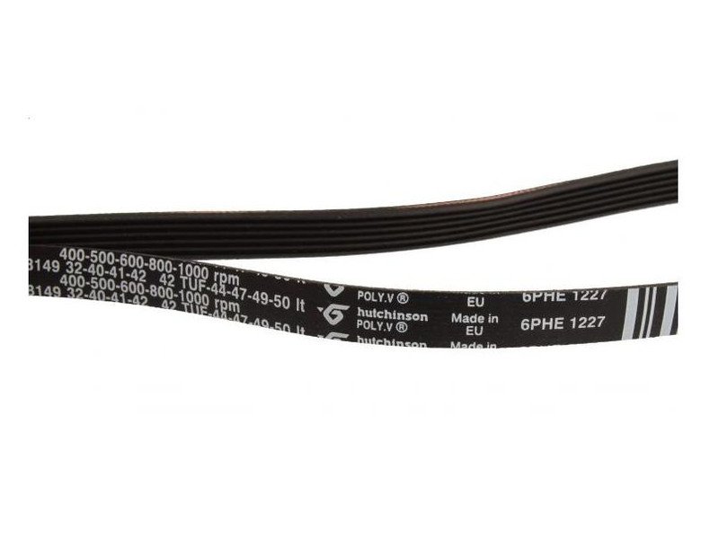 Oznaczenie 1227H6 EL określa parametry techniczne paska. Liczba 1227 odnosi się do jego długości, litera H oznacza profil, natomiast 6 informuje o liczbie rowków. Dzięki temu pasek jest właściwie dopasowany do konstrukcji urządzenia i zapewnia płynną, stabilną pracę bębna w różnych fazach programu prania.