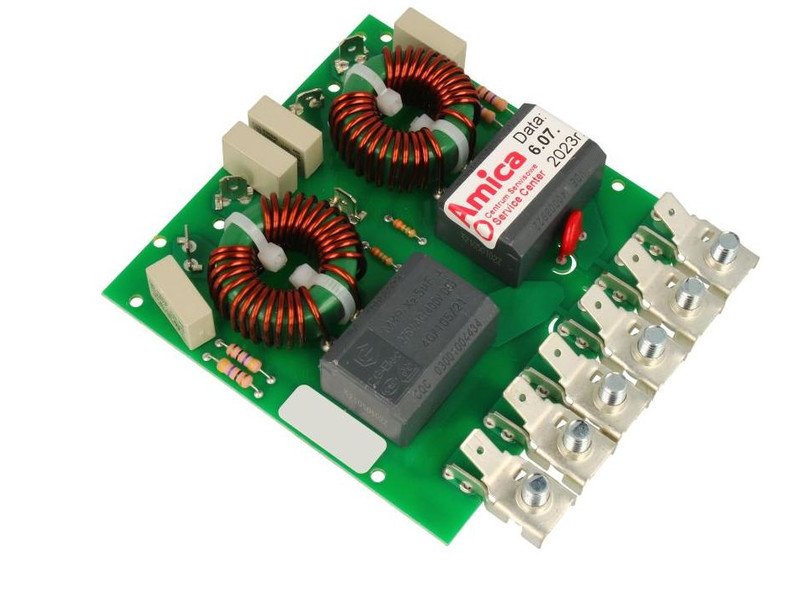 Zadaniem płytki filtrów jest ochrona wrażliwych układów elektronicznych przed zakłóceniami pochodzącymi z sieci elektrycznej oraz przed skokami napięcia, które mogą powodować błędy sterowania, samoczynne wyłączanie się płyty lub problemy z reakcją na panel dotykowy. Sprawny filtr przeciwzakłóceniowy ma bezpośredni wpływ na bezpieczeństwo użytkowania oraz długą żywotność całego urządzenia.